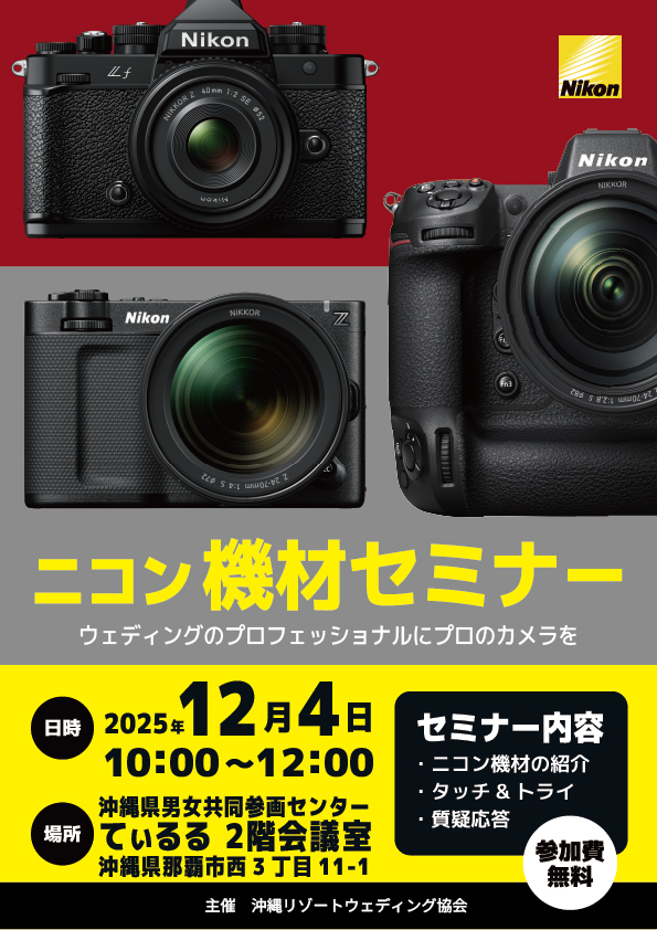 ニコンによる、ウェディング撮影に利用される機材の活用セミナーを開催します。