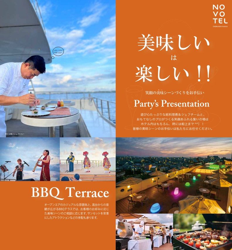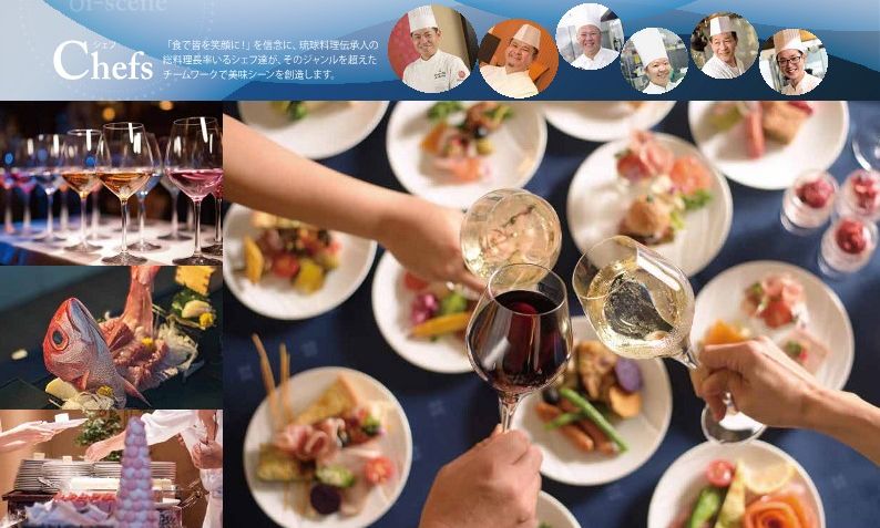また、「美味しいは楽しい!」というテーマに基づき、琉球料理伝承人の認定を受けたフレンチシェフの総料理長をはじめシェフチームがパーティーのコンセプト。お客様のストーリーを食で再現できるようコーディネートします。