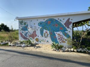 恋の島来間島 ウオールアートとグリーンの映えるフォトスポット